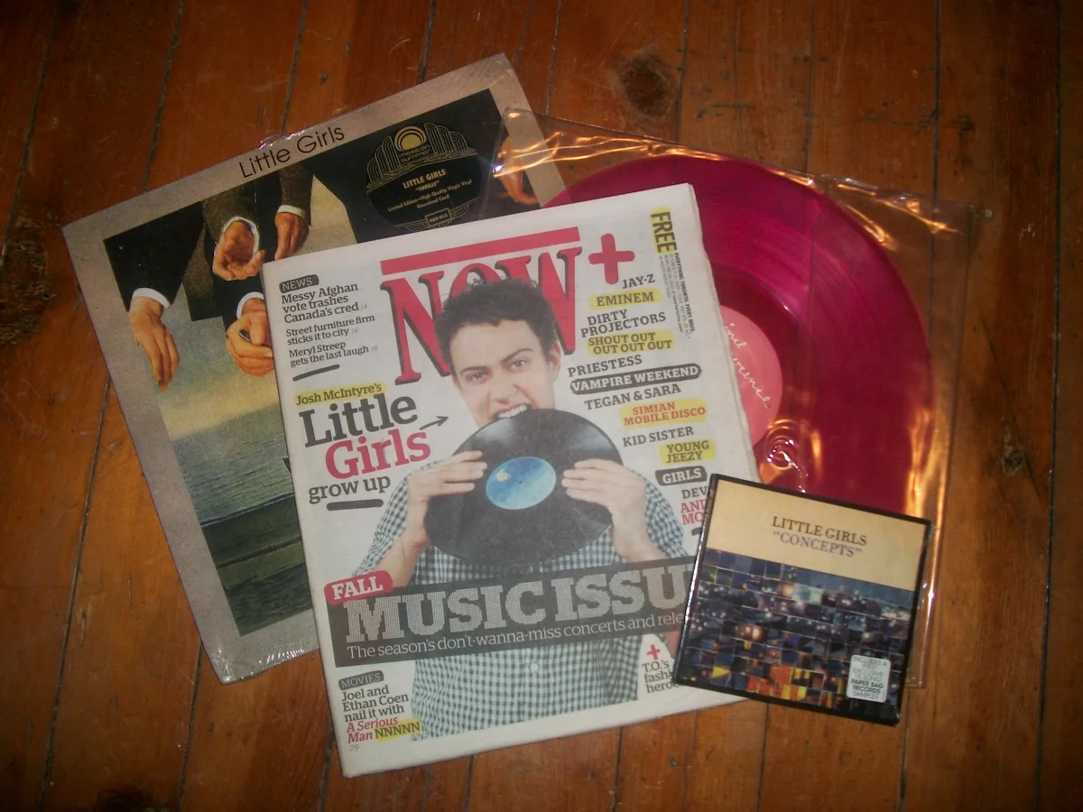 — [Little Girls] was very much in the blog-era, so the anonymity thing didn’t last that long. Once we played live, it was yeah I’m the guy. We’d scratch my face out, then scan them for press photos. I did that for six months and then we blew up stupidly fast. At one point, I did an interview for DAZED and sent them the non scratched photo, then that was in the magazine. Then, I was on the cover of NOW Magazine, and it’s literally the worst photo of all time. Long story short, we did the shoot and it was all like “yeah, I’m a cool guy in a band.” Then we took these really goofy photos. Once Thursday came, I saw and oh my god, they used the goofy picture.